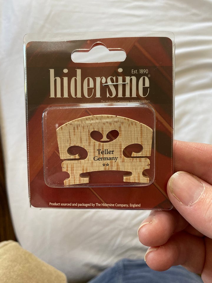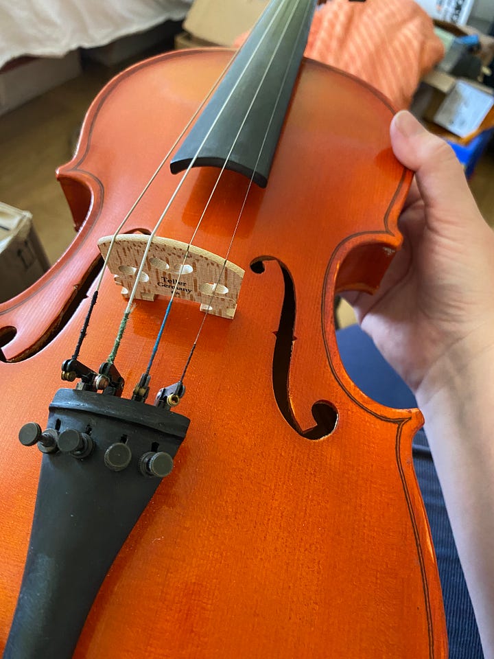 Last June, on a whim, I got down the old Skylark violin I’d had as a teenager, wiped off the dust, googled what strings a violin had, tried to tune it, and promptly snapped the bridge in half. Now, to be fair, the bridge was thin and was probably on its way out anyway, but I didn’t know enough about what I was doing to think about checking that the bridge was perpendicular to the violin before putting the pressure of taunt strings onto it. I got it fixed well enough that it could withstand the strings, and, while I was waiting for a replacement bridge, tentatively started practising.