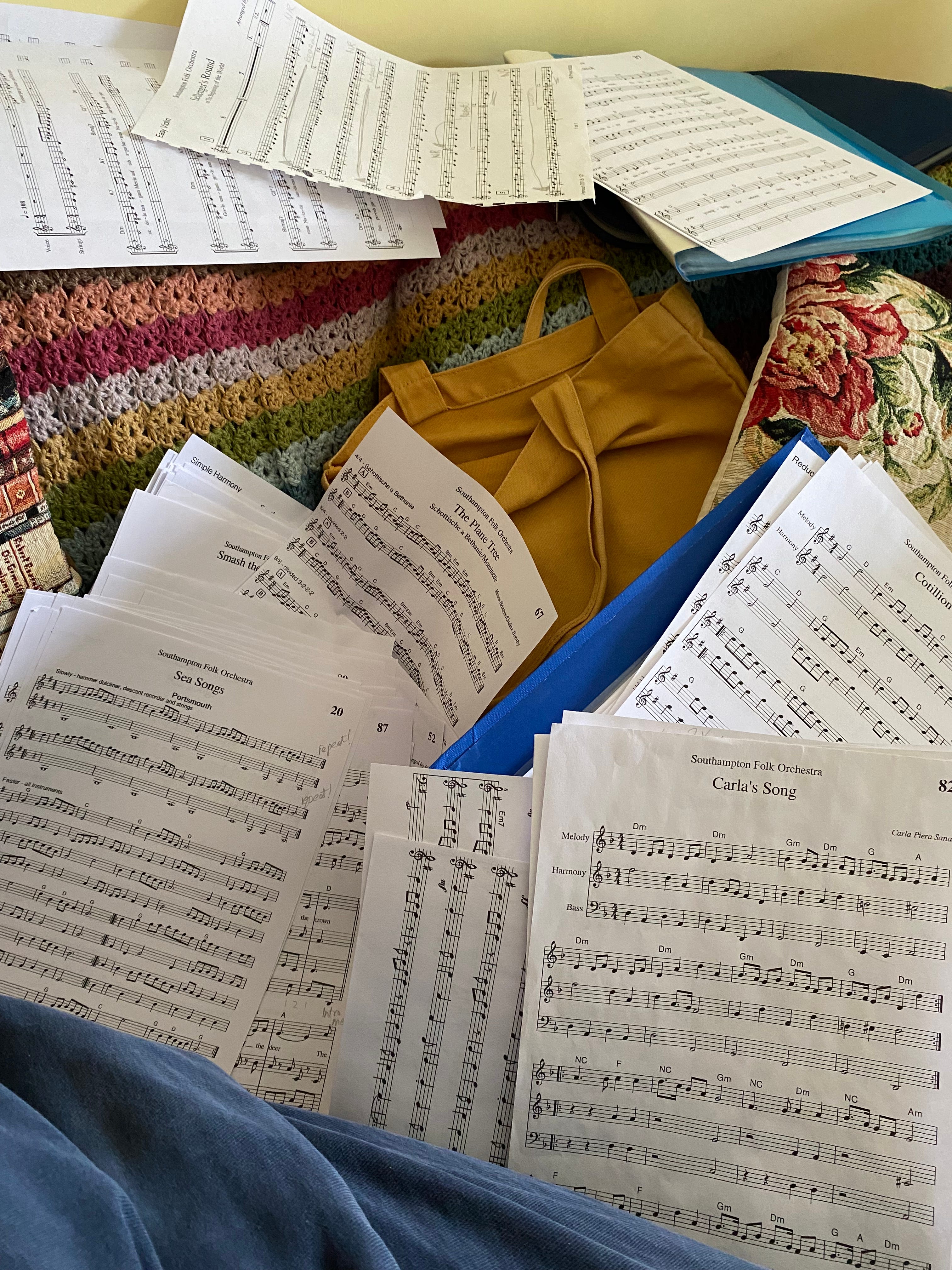I am also trying to work my way systematically through learning various folk tunes, focusing on learning the music played at the Alton Steady Session (a folk music session where the music is played at a ‘steady’ speed). I am mostly learning them using ‘the dots’, which is what folkies call written notation. I want to learn to play by ear, and already I am getting better at this. I think it will actually suit my neurodivergent brain a little better.